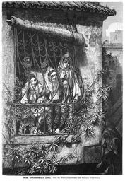 Keywords: Die Gartenlaube (1874) b 723.jpg 723 724 Robert Leinweber 1845 “1921 de Reiche Judenmädchen in Tunis Nach der Natur aufgenommen von Robert Leinweber <br />Bild von Seite 723 der Zeitschrift Die Gartenlaube 1874 Rich Jewish girls in Tunis An image from page 723 of book Die Gartenlaube 1874 Jewish women of Tunisia Barred windows in Tunisia Jewish women in art |