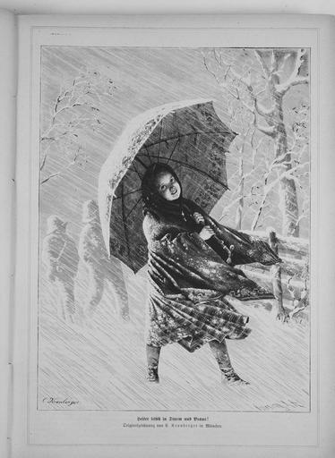 Keywords: Die Gartenlaube (1877) 033.jpg Heiter selbst in Sturm und Braus von Carl Kronberger 032 034 Snow in art Umbrellas in art Carl Kronberger Blizzards in art