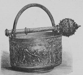 Keywords: Die Gartenlaube (1880) b 721.jpg Weihwasserkessel mit Sprengwedel <br/>Eine Silberarbeit aus dem siebenzehnten Jahrhundert von Anton Eisenhut 721 1880 author Antonius Eisenhoit Aspergillum Religious metalwork Silverware in Germany