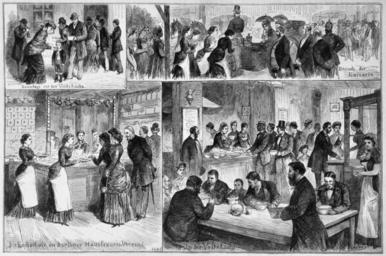 Keywords: Die Gartenlaube (1883) b 477.jpg Sonntags vor der Volksküche Besuch der Kaiserin Die Kochschule des Berliner Hausfrauen-Vereins In der Volksküche 477 478 Images from Gartenlaube requiring categorisation
