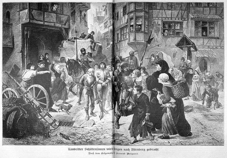 Keywords: Die Gartenlaube (1887) b 776.jpg 776 777 ImageNote 1 1329 2907 1864 197 4504 3144 2 Raubritter Schüttensamen wird gefangen nach Nürnberg gebracht Nach dem Oelgemälde von Konrad Weigand ImageNoteEnd 1 Robber-knights Nobility of Germany