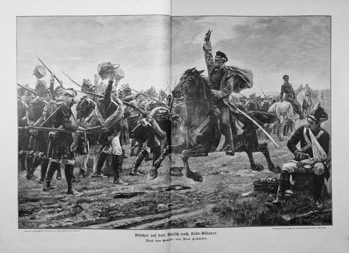 Keywords: Die Gartenlaube (1897) b 012.jpg de Nach einem Gemälde von Rudolf Eichstädt Blücher auf dem Marsch nach Belle-Alliance File Die Gartenlaube 1897 012 jpg und File Die Gartenlaube 1897 013 jpg Montiertes Bild aus zwei Seiten cc-zero Gebhard Leberecht von Blücher Gartenlaube 1897 |