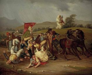 Keywords: Die verunglückte Kutschenfahrt 19Jh.jpg century 19 Oil on canvas cm 35 42 institution http //www dorotheum com Dorotheum other versions PD-old-100 Images from Dorotheum 19th-century unidentified painters Unknown painters from Germany Munich School 19th-century paintings location missing 19th-century paintings not categorised by year 19th-century paintings of horses Carriages in art Road accidents in art |