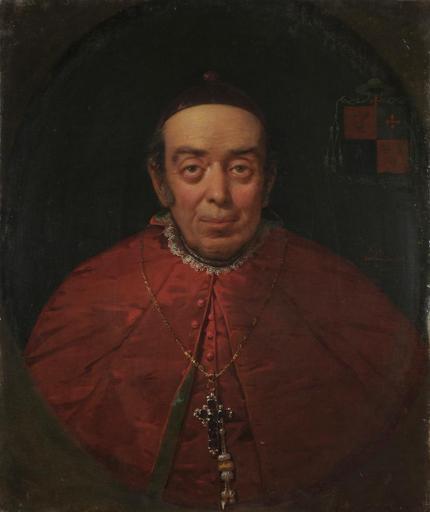 Keywords: Diego Antonio de Elizondo y Prado.jpg Artwork Creator Raymond Monvoisin Retrato del politico y religioso Diego Antonio de Elizondo y Prado; llegó a ser obispo de Concepción y presidente del Senado de Chile 1851 oil on canvas cm 73 61 5 Institution Museo Histórico Nacional Chile object history El cuadro fue exhibido en la Exposición del Coloniaje organizada por Benjamín Vicuña Mackenna en 1873 posteriormente fue comprado por el Consejo de Bellas Artes en 1896 y transferido en 1930 desde el Museo Nacional de Bellas Artes al Museo Histórico Nacional de cuya colección forma parte ahora credit line El catálogo de l a Exposición del Coloniaje califica al cuadro como uno de los mejores retratos pintados en Chile por Monvoisin El obispo Elizondo es descrito en ese documento como un cura de San Fernando muchos años Allí acumuló una fortuna que después se hizo considerable La viveza y flexibilidad de su genio y su talento le hicieron figurar desde muy temprano en la política pues fue uno de los secretarios del Congreso de 1811 y varias veces desempeñó la vicaría general de la diócesis de Santiago hasta que fue electo obispo de Concepción accession number MHN 3-189 Catálogo de la exposición 100 años 1000 historias MHN 2011 p 9; http //www museohistoriconacional cl/618/w3-article-9736 html descargable desde el sitio web del MHN PD PD-old-100 Raymond Quinsac Monvoisin Portrait paintings in the Museo Histórico Nacional Chile 1851 oil on canvas paintings Portrait 1851 portrait paintings Male 19th-century oil oval portraits of men at bust length 1851 19th-century oil portraits of men at bust length in ecclesiastical costumes 1851 19th-century portraits with coat of arms 1851 Bishops of the Roman Catholic Archdiocese of Concepción Deputies of Chile Portrait paintings of men of Chile Senators of Chile |