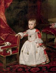 Keywords: Diego Velázquez 046b.jpg Artwork Creator Diego Velázquez 1659 oil canvas cm 129 99 Institution Kunsthistorisches Museum accession number object history credit line Inv -Nr GG_319<br/> Provenienz 1659 als Geschenk an den Wiener Hof gesandt<br/> Abgebildete Person Infant Philipp Prosper Sohn d Philipp IV von Habsburg Spanien Velázquez painted the Portrait of the Infante Philip Prosper 1657-1661 One of Velázquez last works it was sent at once to the imperial court in Vienna It shows shortly before his death the two-year-old in whom as the only heir to the crown all the hopes of the Spanish Habsburgs had been placed In the traditional court portrait pose the child rests one hand on the back of a small red velvet chair containing a dainty little dog The sickly prince wears a white smock over his official red gown; the smock is decorated with tiny bells and lucky amulets http //bilddatenbank khm at/viewArtefact id 2028 <gallery> File Diego Velázquez 046b jpg File Retrato del príncipe Felipe Prospero by Diego Velázquez jpg </gallery> PD-old-100 original upload log wikitable date/time username resolution size edit summary ---- 21 43 26 August 2008 User Cropbot <a href http //upload wikimedia org/wikipedia/commons/4/41/Prince_Felipe_Prospero_1659 jpg ><img alt Thumbnail for version as of 21 43 26 August 2008 src http //upload wikimedia org/wikipedia/commons/thumb/4/41/Prince_Felipe_Prospero_1659 jpg/94px-Prince_Felipe_Prospero_1659 jpg width 94 height 120 border 0 /></a></td><td>366×469 24 KB upload cropped version operated by <a href /wiki/User Finavon title User Finavon >User Finavon</a> Summary border cropped ---- 21 39 26 August 2008 User Gryffindor <a href http //upload wikimedia org/wikipedia/commons/archive/4/41/20080826214336 21Prince_Felipe_Prospero_1659 jpg ><img alt Thumbnail for version as of 21 39 26 August 2008 src http //upload wikimedia org/wikipedia/commons/thumb/archive/4/41/20080826214336 21Prince_Felipe_Prospero_1659 jpg/93px-Prince_Felipe_Prospero_1659 jpg width 93 height 120 border 0 /></a></td><td>386×500 28 KB Porträt des Infanten Philipp Prosper oil on canvas 129 × 99 cm Vienna Wien Spain Spanien Kunsthistorisches Museum ---- 07 22 17 July 2008 User Melesse <a href http //upload wikimedia org/wikipedia/commons/archive/4/41/20080826213920 21Prince_Felipe_Prospero_1659 jpg ><img alt Thumbnail for version as of 07 22 17 July 2008 src http //upload wikimedia org/wikipedia/commons/thumb/archive/4/41/20080826213920 21Prince_Felipe_Prospero_1659 jpg/92px-Prince_Felipe_Prospero_1659 jpg width 92 height 119 border 0 /></a></td><td>634×823 82 KB ---- 07 21 17 July 2008 User File Upload Bot Magnus Manske <a href http //upload wikimedia org/wikipedia/commons/archive/4/41/20080717072242 21Prince_Felipe_Prospero_1659 jpg ><img alt Thumbnail for version as of 07 21 17 July 2008 src http //upload wikimedia org/wikipedia/commons/thumb/archive/4/41/20080717072242 21Prince_Felipe_Prospero_1659 jpg/92px-Prince_Felipe_Prospero_1659 jpg width 92 height 119 border 0 /></a></td><td>634×823 82 KB BotMoveToCommons en wikipedia Velázquez painted the Portrait of the Infante Felipe Próspero 1657-1661 One of Velázquez last works it was sent at once to the imperial court in Vienna It shows shortly befo DEFAULTSORT 1659; Philip Prosper of Spain El príncipe Felipe Próspero Velázquez People in three-quarter views in art Boys with dogs |