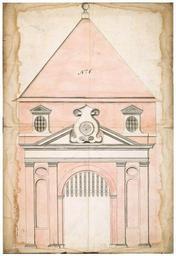Keywords: Diest Poort.jpg -6 136733 106 811704 8 en According to the Leupe catalogue NA the original title reads <Afteekening van de Diestpoort te Batavia> The edges have turned brown due to damp Notes on reverse <De poort Diest> / <Behoort by de papieren van algemeen Bestuur 1658 N 6 5 items Portef 1658 I> / <112> must be the folio number in the OBP volume / <No 27> must be the number of the item in the OBP volume / <602 gg> / < 1658 > in pencil Diestpoort at Batavia - ca 1658 drawing coloured drawing 72 x 49 5 cm 10 Rijnlandse roeden 168 strepen; 1 224 - voc survey / view fortification ornamentation of building gate - - 2012-01-29 Atlas of Mutual Heritage - Netherlands anonymous PD-Art Dutch colonial architecture in Jakarta Uploaded with UploadWizard |