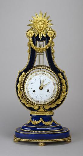 Keywords: Dieudonné Kinable - Mantel Clock in the Form of a Lyre - Walters 58232.jpg French clockmaking at the time of Louis XVI is unsurpassed in the delicacy and grace of its decoration and in the imagination displayed in its forms Perhaps the most elegant shape was that of the lyre derived from the ancient Greek musical instrument It was introduced as early as 1758 and was employed for important clocks throughout the remainder of the century The body of this example is of Sèvres porcelain with exceptionally fine applied gilt-bronze ornaments The upper part of the pendulum is formed to represent the strings of the instrument The dial face is enameled with signs of the zodiac by the distinguished Geneva-born artist Jean Coteau ca 1739-1812 and is signed Kinable active 1780-1825 ca 1780 1800 soft-paste porcelain ormolu mounts and gilt bronze cm 60 8 accession number 58 232 7287 Lord Willoughby d'Eresby E M Hodgkins date and mode of acquisition unknown William T / Henry Walters Collection Baltimore date and mode of acquisition unknown Walters Art Museum Henry Walters Acquired by William T or Henry Walters Maryland Heritage European Art at the Time of the Revolution The Walters Art Gallery Baltimore 1976 Going for Baroque The Walters Art Gallery Baltimore 1995-1996 Vive la France French Treasures from the Middle Ages to Monet The Walters Art Gallery Baltimore 1999-2000 place of origin France Walters Art Museum license Timepieces in the Walters Art Museum Clocks made of porcelain Sèvres porcelain in the Walters Art Museum Media contributed by the Walters Art Museum needs artist review Pendule 18th-century desk clocks Vive la France French Treasures from the Middle Ages to Monet Bertie family |