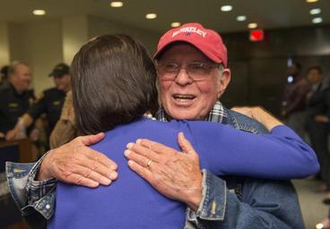 | Keywords: dsc_5237.jpg dsc5237jpg austin tx usa people Luci Baines Johnson, daughter of President Lyndon Johnson, greets singer/songwriter Country Joe McDonald backstage at the LBJ Presidential Library on Thursday, April 28, 2016. McDonald performed at the Library as part of its Vietnam War Summit.  McDonald sang his memorable Vietnam War protest song, "I Feel Like I'm Fixin' to Die Rag" while folk singer Peter Yarrow sang "Where Have All the Flowers Gone?"  The two musicians appeared together to discus how the war protest music of the 1960s and 1970s helped to comfort U.S. troops in Vietnam while fueling the anti-war movement at home. The music discussion was moderated by Bob Santelli, executive director of the GRAMMY Museum.   LBJ Library photo by Jay Godwin 04/28/2016 Luci Baines Johnson, daughter of President Lyndon Johnson, greets singer/songwriter Country Joe McDonald backstage at the LBJ Presidential Library on Thursday, April 28, 2016. McDonald performed at the Library as part of its Vietnam War Summit.  McDonald sang his memorable Vietnam War protest song, "I Feel Like I'm Fixin' to Die Rag" while folk singer Peter Yarrow sang "Where Have All the Flowers Gone?"  The two musicians appeared together to discus how the war protest music of the 1960s and 1970s helped to comfort U.S. troops in Vietnam while fueling the anti-war movement at home. The music discussion was moderated by Bob Santelli, executive director of the GRAMMY Museum.   LBJ Library photo by Jay Godwin 04/28/2016 |