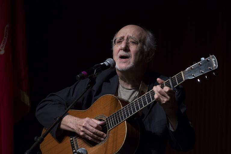 | Keywords: winner people performer musician music stringed instrument guitar Folk singer Peter Yarrow performs "Where Have All The Flowers Gone?" on Thursday, April 28, 2016, at the LBJ Presidential Library. The event was part of the library’s three-day Vietnam War Summit. Yarrow, who used to perform with folk group Peter, Paul and Mary, was part of the huge 1969 moratorium rally in Washington, D.C. against the Vietnam War. He participated in a panel discussion at the LBJ Library with singer/songwriter Country Joe McDonald, a Navy veteran, who wrote one of the most memorable Vietnam War protest songs, "I Feel Like I'm Fixin' to Die Rag," for his band, Country Joe and the Fish. The two discussed how the music of the 1960s and 1970s helped to comfort U.S. troops in Vietnam while fueling the anti-war movement at home. The music discussion was moderated by Bob Santelli, executive director of the GRAMMY Museum. LBJ Library photo by David Hume Kennerly 04/28/2016. Folk singer Peter Yarrow performs "Where Have All The Flowers Gone?" on Thursday, April 28, 2016, at the LBJ Presidential Library. The event was part of the library’s three-day Vietnam War Summit. Yarrow, who used to perform with folk group Peter, Paul and Mary, was part of the huge 1969 moratorium rally in Washington, D.C. against the Vietnam War. He participated in a panel discussion at the LBJ Library with singer/songwriter Country Joe McDonald, a Navy veteran, who wrote one of the most memorable Vietnam War protest songs, "I Feel Like I'm Fixin' to Die Rag," for his band, Country Joe and the Fish. The two discussed how the music of the 1960s and 1970s helped to comfort U.S. troops in Vietnam while fueling the anti-war movement at home. The music discussion was moderated by Bob Santelli, executive director of the GRAMMY Museum. LBJ Library photo by David Hume Kennerly 04/28/2016. |