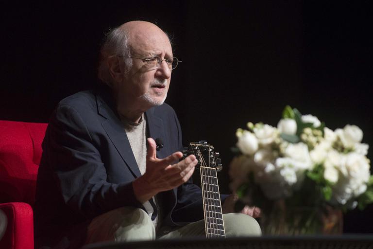 | Keywords: austin texas Folk singer Peter Yarrow discusses how the protest music of the 1960s and 1970s helped to comfort U.S. troops in Vietnam while fueling the anti-war movement at home. Yarrow participated in the LBJ Presidential Library's Vietnam War Summit on Thursday, April 28, 2016.   Yarrow, who performed with his folk group—Peter, Paul and Mary—at the huge 1969 moratorium rally in Washington, D.C. against the Vietnam War, appeared with Country Joe McDonald. McDonald wrote one of the most memorable Vietnam War protest songs, "I Feel Like I'm Fixin' to Die Rag" for his band, Country Joe and the Fish.   The music discussion was moderated by Bob Santelli, executive director of the GRAMMY Museum, on Thursday, April 28, 2016, at the LBJ Presidential Library. The event was part of the library’s three-day Vietnam War Summit. LBJ Library photo by David Hume Kennerly 04/28/2016.  LBJ Library photo by Marsha Miller 04/28/2016.  Folk singer Peter Yarrow discusses how the protest music of the 1960s and 1970s helped to comfort U.S. troops in Vietnam while fueling the anti-war movement at home. Yarrow participated in the LBJ Presidential Library's Vietnam War Summit on Thursday, April 28, 2016.   Yarrow, who performed with his folk group—Peter, Paul and Mary—at the huge 1969 moratorium rally in Washington, D.C. against the Vietnam War, appeared with Country Joe McDonald. McDonald wrote one of the most memorable Vietnam War protest songs, "I Feel Like I'm Fixin' to Die Rag" for his band, Country Joe and the Fish.   The music discussion was moderated by Bob Santelli, executive director of the GRAMMY Museum, on Thursday, April 28, 2016, at the LBJ Presidential Library. The event was part of the library’s three-day Vietnam War Summit. LBJ Library photo by David Hume Kennerly 04/28/2016.  LBJ Library photo by Marsha Miller 04/28/2016. |