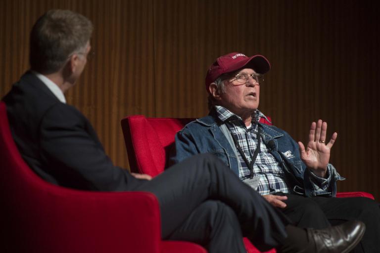 | Keywords: austin texas indoor Singer/songwriter Country Joe McDonald, right, a Navy veteran and Vietnam War protester, discusses how the music of the 1960s and 1970s helped to comfort U.S. troops in Vietnam while fueling the anti-war movement at home. He spoke on Thursday, April 28, 2016, at the LBJ Presidential Library's Vietnam War Summit.    McDonald also performed one of his most popular Vietnam War protest songs, "I Feel Like I'm Fixin' to Die Rag" as well as "Superbird." He was joined by folk singer Peter Yarrow, who used to perform with folk group Peter, Paul and Mary. Yarrow sang "Where Have All the Flowers Gone?"  The music discussion was moderated by Bob Santelli, left, executive director of the GRAMMY Museum.    LBJ Library photo by Marsha Miller 04/28/2016.  Singer/songwriter Country Joe McDonald, right, a Navy veteran and Vietnam War protester, discusses how the music of the 1960s and 1970s helped to comfort U.S. troops in Vietnam while fueling the anti-war movement at home. He spoke on Thursday, April 28, 2016, at the LBJ Presidential Library's Vietnam War Summit.    McDonald also performed one of his most popular Vietnam War protest songs, "I Feel Like I'm Fixin' to Die Rag" as well as "Superbird." He was joined by folk singer Peter Yarrow, who used to perform with folk group Peter, Paul and Mary. Yarrow sang "Where Have All the Flowers Gone?"  The music discussion was moderated by Bob Santelli, left, executive director of the GRAMMY Museum.    LBJ Library photo by Marsha Miller 04/28/2016. |
