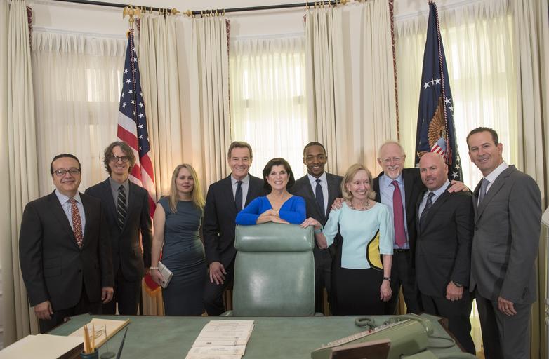 | Keywords: dig13890-162.nef dig13890162nef austin tx usa indoor In conjunction with HBO and the LBJ School of Public Affairs, the LBJ Library held a special preview screening and discussion of the new HBO film "All the Way" starring Bryan Cranston in his Tony Award-winning role as Lyndon Johnson and Anthony Mackie as Martin Luther King, Jr. Following the screening of the film, writer Robert Schenkkan, director Jay Roach, actors Bryan Cranston and Anthony Mackie, and historian and consultant on the film Doris Kearns Goodwin, joined Library Director Mark Updegrove on stage for a discussion. The film will debut on HBO on May 21, 2016. LBJ Library photo by Jay Godwin In conjunction with HBO and the LBJ School of Public Affairs, the LBJ Library held a special preview screening and discussion of the new HBO film "All the Way" starring Bryan Cranston in his Tony Award-winning role as Lyndon Johnson and Anthony Mackie as Martin Luther King, Jr. Following the screening of the film, writer Robert Schenkkan, director Jay Roach, actors Bryan Cranston and Anthony Mackie, and historian and consultant on the film Doris Kearns Goodwin, joined Library Director Mark Updegrove on stage for a discussion. The film will debut on HBO on May 21, 2016. LBJ Library photo by Jay Godwin |