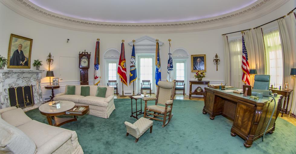 Keywords: architecture building The Oval Office replica at the LBJ Presidential Library. This famous room from the West Wing of the White House has been reproduced in our library at a 7/8th scale. The Oval Office looks exactly as it did during LBJ's White House years, including the desk he used beginning in his Senate days through the White House years, rocking chair, telephone system, and the teletype machines and three televisions that kept him up to date on the news. Photo taken with a fisheye lens. LBJ Library photo by Jay Godwin 07/13/2016 The Oval Office replica at the LBJ Presidential Library. This famous room from the West Wing of the White House has been reproduced in our library at a 7/8th scale. The Oval Office looks exactly as it did during LBJ's White House years, including the desk he used beginning in his Senate days through the White House years, rocking chair, telephone system, and the teletype machines and three televisions that kept him up to date on the news. Photo taken with a fisheye lens. LBJ Library photo by Jay Godwin 07/13/2016 |