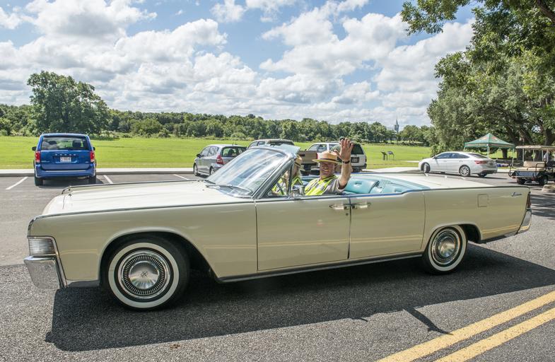 Keywords: dsc_2388.nef dsc2388nef austin tx usa outdoor vehicle car Park Rangers Patrick g. Pelarski and Carol Schlachter drive a mid-sixties Lincoln Continental with LBJ 1 license plates. The Lyndon B. Johnson National Historical Park celebrated the 108th anniversary of President Johnson’s birth with a ceremony at 10:00 am on Saturday, August 27. Continuing a tradition that Lady Bird Johnson began in 1973, a wreath was placed at the president’s gravesite in the Johnson family cemetery at the LBJ Ranch by Park Superintendent Russ Whitlock and Brigadier General Heather L. Pringle. After the ceremony, park staff members commemorated the National Park Service Centennial by reading the names of the 47 national park units established during Lyndon Johnson’s presidency. LBJ Library photo by Jay Godwin 08/27/2016 Park Rangers Patrick g. Pelarski and Carol Schlachter drive a mid-sixties Lincoln Continental with LBJ 1 license plates. The Lyndon B. Johnson National Historical Park celebrated the 108th anniversary of President Johnson’s birth with a ceremony at 10:00 am on Saturday, August 27. Continuing a tradition that Lady Bird Johnson began in 1973, a wreath was placed at the president’s gravesite in the Johnson family cemetery at the LBJ Ranch by Park Superintendent Russ Whitlock and Brigadier General Heather L. Pringle. After the ceremony, park staff members commemorated the National Park Service Centennial by reading the names of the 47 national park units established during Lyndon Johnson’s presidency. LBJ Library photo by Jay Godwin 08/27/2016 |