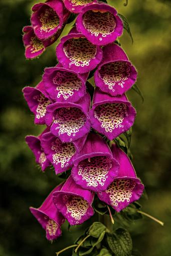 Keywords: flower plant organic pattern pattern outdoor depth of field texture serene bright Digitalis purpurea (foxglove, common foxglove, purple foxglove or lady's glove) is a species of flowering plant in the plantain family Plantaginaceae, native and widespread throughout most of temperate Europe. The flowers are arranged in a showy, terminal, elongated cluster, and each flower is tubular and pendent. The flowers are typically purple, but some plants, especially those under cultivation, may be pink, rose, yellow, or white. The inside surface of the flower tube is heavily spotted. en.wikipedia.org/wiki/Digitalis_purpurea Digitalis purpurea (foxglove, common foxglove, purple foxglove or lady's glove) is a species of flowering plant in the plantain family Plantaginaceae, native and widespread throughout most of temperate Europe. The flowers are arranged in a showy, terminal, elongated cluster, and each flower is tubular and pendent. The flowers are typically purple, but some plants, especially those under cultivation, may be pink, rose, yellow, or white. The inside surface of the flower tube is heavily spotted. en.wikipedia.org/wiki/Digitalis_purpurea |
