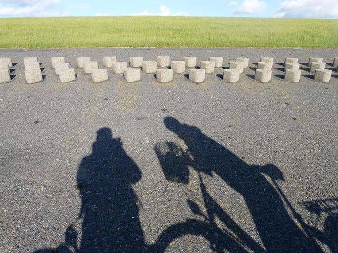 Keywords: dike dike road shadow shadow play hispanic person human silhouette north sea nordfriesland cycling cycle