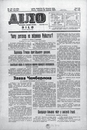| Keywords: Dilo newspaper 31.08.1939.png en The first page of the Ukrainian newspaper Dilo one of the last issues 31 08 1939 uk Пе ша сто інка газети Діло від 31 08 1939 один з останніх випусків ru Пе вая ст аница ук аинской газеты Дело от 31 08 1939 один из последних выпусков 1939-08-31 http //www svoboda-news com/arxiv/pdf/2010/Svoboda-2010-01 pdf author PD-old Newspaper front pages Newspapers of Ukraine in Ukrainian Uploaded_with_UploadWizard | ||||