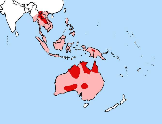 Keywords: Dingo-map-2.png Geographic range of the Dingo Canis lupus dingo IUCN Animal Diversity Web and more 2006-07-15 TBjornstad 10 57 15 July 2006 UTC Modified by Christophe cagé talk 08 58 14 June 2008 UTC Public Domain Image Dingo-map png The pinky colour indicate areas of crossbreeding uncertainty Canis lupus dingo |