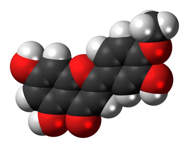Keywords: Diosmetin molecule spacefill.png Space-filling model of the diosmetin molecule a compound of the flavone family Color code 505050 Carbon C black<br> F0F0F0 Hydrogen H white<br> F51E1E Oxygen O red<br> 2011-08-04 own DS Visualizer Jynto talk Ball-and-stick version cc-zero Images by Jynto Space-filling models Luteolin O-methylated flavones |