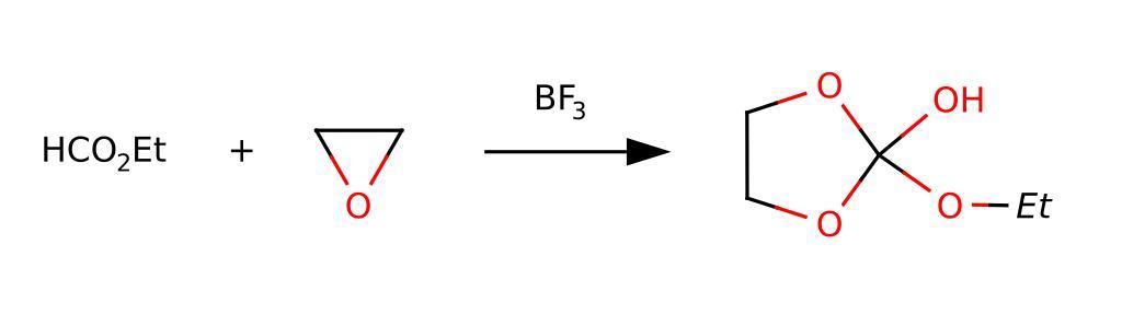 Keywords: Dioxolan-Orthoester.Epoxy.Synthesis.svg en Synthesis of dioxolan orthoester 2-ethoxy-1 3-dioxolan-2-ol by reaction of oxirane and ethylformate own Kurgus 2010-06-19 Orthoesters Dioxolanes Epoxides