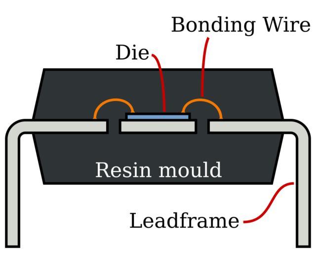 Keywords: DIP Cross-section.svg dual in-line package DIP IC carrier Own Inductiveload 2009-02-08 DIP integrated circuit packages Wire bonding