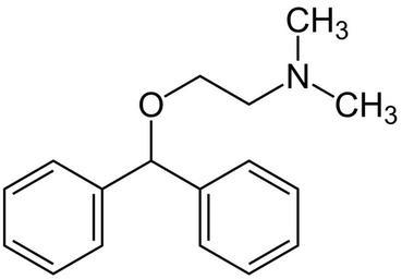 Keywords: Diphenhydramine.svg chemical structure of Diphenhydramine made using BKchem Own 2007-02-14 User Bryan Derksen Diphenhydramine
