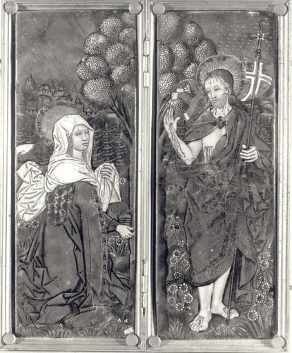 | Keywords: Diptych Noli me tangere.jpg Diptych Noli me tangere Christ after Resurrection and St Mary Magdalene Dyptyk Noli me tangere Chrystus Zmartwychwstały i św Maria Magdalena Enamel copper cm 7 5 21 Object history Catalogue of stolen and missing cultural achievements / comp Jan Świeczyński; Ośrodek Informacyjno-Koordynacyjny Ochrony Obiektów Muzealnych Warsaw 1988 Editor Wojciech Jaskulski Piotr Ogrodzki See also http //kolekcje mkidn gov pl/katalog/podglad ID 11445 Department of National Heritage Wartime losses an official webpage of Polish Ministry of Culture Art and National Heritage century 15 Nardon Pénicaud Limoges Other versions Photo Photo Polish Ministry of Culture Art and National Heritage author < 1939 PD-Polish Anonymous-EU Metalwork lost in Poland during World War II Noli me tangere Limoges enamel - 15th century |