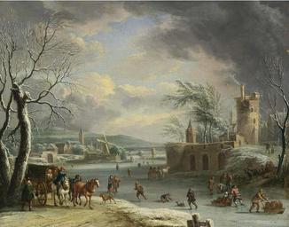 Keywords: Dirck Dalens III - Een winterlandschap met reizigers in een koets.jpg artwork Creator Dirck Dalens III en A winter landscape with travellers in a horse-drawn carriage figures skating village and church beyond 1half other date century 18 Oil on canvas cm 55 2 69 http //www arcadja com/auctions/en/private/dalens_dirk_iii/artworks/6863/0/ Sotheby's via ARCADJA auction results PD-old-100-1923 1753 Dirck Dalens III Landscape paintings of the Netherlands 18th-century landscape paintings Paintings of winter Images from Sotheby's |