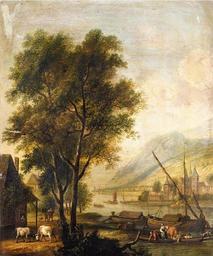 Keywords: Dirck Dalens III - Rivierlandschap met koeien en figuren.jpg artwork Creator Dirck Dalens III en River landscape with cattle and figures before a cottage and barges on the river 1half other date century 18 Oil canvas cm 42 35 signed lower left D DALENS http //www sothebys com/de/auctions/ecatalogue/2005/old-master-paintings-w05717/lot 487 html Sotheby's PD-old-100-1923 1753 Dirck Dalens III Landscape paintings of the Netherlands 18th-century landscape paintings Images from Sotheby's |