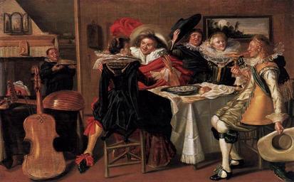 | Keywords: Dirck Hals - Merry Company at Table - WGA11040.jpg Artwork Creator Dirck Hals other date between 1627 1629 Oil oak size cm 28 44 Institution Gemäldegalerie Berlin object history credit line accession number WGA link 11040 http //www wga hu/art/h/hals/dirk/merry_co jpg http //www wga hu/html/h/hals/dirk/merry_co html PD-old-100 painting genre Dutch 1601-1650 Dirck Hals 1628 Dutch Golden Age paintings in the Gemäldegalerie Berlin Hals Dirck 1627 paintings WGA form painting WGA type genre WGA School Dutch WGA time period 1601-1650 People in rooms in art 1628 paintings 1629 paintings 17th-century oil on panel paintings in Germany Men with hats in art Hat tipping Feathered headdresses Servants in art Men and women in art 1620s paintings in Berlin Paintings of musical instruments 1620s fashion Lace collars in art Merry company paintings |