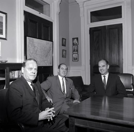 | Keywords: u.s. national archives usnationalarchives jfk presidential library jfkpresidentiallibrary people groupshot monochrome blackandwhite indoor black and white Original Caption: Director of Food for Peace George S. McGovern with Visitors We are looking for your help in identifying unknown people in our White House Photographs collection. If you have any information about this photograph, please post a comment, including any relevant sources, for the catalogers at the John F. Kennedy Presidential Library. Thank you! Local Identifier: JFKWHP-ST-253-2-61 Created By: President (1963-1969 : Johnson). White House Photograph Office. (1963 - 1969) From: Cecil Stoughton's White House Photographs, 01/29/1961 - 12/31/1963 Contact: John F. Kennedy Library (LP-JFK), Columbia Point Boston, MA 02125-3398 Phone: 617-514-1600 Fax: 617-514-1652 Email: kennedy.library@nara.gov Production Dates: 11/1/1961 Scope and Content Note: In this photograph Director of Food for Peace Program George S. McGovern (right) meets with two unidentified men. Food for Peace office, Executive Office Building, Washington, D.C. Persistent URL: JFK Library URL: www.jfklibrary.org/Asset-Viewer/Archives/JFKWHP-ST-253-2-... Access Restrictions: Unrestricted Use Restrictions: Unrestricted Original Caption: Director of Food for Peace George S. McGovern with Visitors We are looking for your help in identifying unknown people in our White House Photographs collection. If you have any information about this photograph, please post a comment, including any relevant sources, for the catalogers at the John F. Kennedy Presidential Library. Thank you! Local Identifier: JFKWHP-ST-253-2-61 Created By: President (1963-1969 : Johnson). White House Photograph Office. (1963 - 1969) From: Cecil Stoughton's White House Photographs, 01/29/1961 - 12/31/1963 Contact: John F. Kennedy Library (LP-JFK), Columbia Point Boston, MA 02125-3398 Phone: 617-514-1600 Fax: 617-514-1652 Email: kennedy.library@nara.gov Production Dates: 11/1/1961 Scope and Content Note: In this photograph Director of Food for Peace Program George S. McGovern (right) meets with two unidentified men. Food for Peace office, Executive Office Building, Washington, D.C. Persistent URL: JFK Library URL: www.jfklibrary.org/Asset-Viewer/Archives/JFKWHP-ST-253-2-... Access Restrictions: Unrestricted Use Restrictions: Unrestricted |