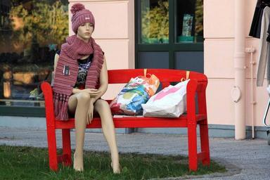 Keywords: display dummy bank doll poland woman sit wait