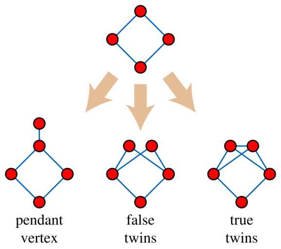 Keywords: Distance-hereditary construction.svg Three operations by which distance-hereditary graphs may be constructed Own 2008-05-07 David Eppstein Files by User David Eppstein from en wikipedia Graph theory