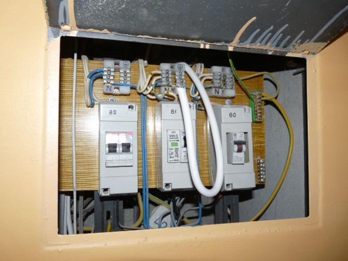 | Keywords: Distribution board in USSR apartment building.JPG USSR apartment building Flat 81 is preparing to change old aluminium wires max load 8A to new copper max load 20A New copper wires should be connected to circuit breaker only after finishing connect to circuits in apartment or maybe whole wiring replacement inside apartment ru Элект ический щит в ква ти ном доме советской пост ойки Ква ти а 81 готовится к замене ста ой алюминиевой п оводки на медную из-за повышения пот ебляемой мощности в этой ква ти е В целях безопасности подключать медный кабель к главному автомату защиты можно только после заве шения абот по монтажу новой п оводки внут и ква ти ы own Dmitry G 2009-09-24 Distribution boards |