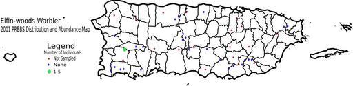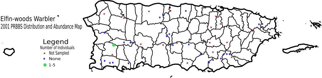 Keywords: Distribution of the Elfin-woods Warbler 2001.svg Bird count map of the Elfin-woods Warbler Image created from data found at http //www pwrc usgs gov/bbs/Puerto_Rico/pr2001/pr2001_distribution/pr01ewwa gif and combined with data from http //www pwrc usgs gov/bbs/Puerto_Rico/pr1997/pr97g gif Locations are approximations 2006-03-03 own assumed Joelr31~commonswiki Setophaga angelae Parulidae distribution maps |