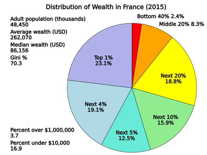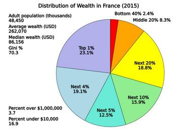 Keywords: Distribution of Wealth in France.svg translate yes en Wealth shares of different percentile groups in France in 2015 Data from Credit Suisse http //publications credit-suisse com/tasks/render/file/index cfm fileid C26E3824-E868-56E0-CCA04D4BB9B9ADD5 Table 6-5 Page 149 2016-07-20 own Delphi234 other versions cc-zero Distribution of wealth Economic inequality SVG pie charts |