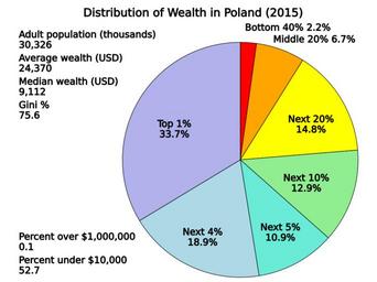 Keywords: Distribution of Wealth in Poland.svg translate yes en Wealth shares of different percentile groups in Poland in 2015 Data from Credit Suisse http //publications credit-suisse com/tasks/render/file/index cfm fileid C26E3824-E868-56E0-CCA04D4BB9B9ADD5 Table 6-5 Page 149 2016-07-20 own Delphi234 other versions cc-zero Distribution of wealth Economic inequality SVG pie charts |