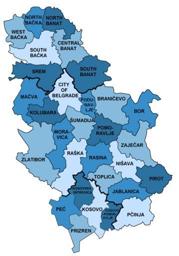 | Keywords: Districts of Serbia.png en Map of districts of Serbia sr Ка та ок уга С бијe енглеска ве зија Disricts_of_Serbia_by_population_density svg 2010-09-30 17 12 UTC Disricts_of_Serbia_by_population_density svg Gajmar at ru wikipedia derivative work Vanjagenije <span class signature-talk >talk</span> Bor district png Borski okrug PNG Branicevo district png Central Banat district png Grad Beograd city of Belgrade png Jablanica district png Kolubara district png Kosovo district png Kosovska Mitrovica district png Kosovsko Pomoravlje district png Macva district png Moravica district png Nisava district png North Backa district png North Banat district png Pcinja district png Pec distrikt png Pirot district png Podunavlje district png Pomoravlje district png Prizren district png Rasina district png Raska district png South Backa district png South Banat district png Srem district png Sumadija district png Toplica district png West Backa district png Zajecar district png Zlatibor district png <gallery> Districts of Serbia Kosovo disputed png Version with disputed Kosovo Districts of Serbia without Kosovo png Version without Kosovo Okruzi Srbije PNG Serbian language version </gallery> sr Ка та ок уга С бија на густини становништва Own work Gajmar at http //ru wiki</nowiki> Uploaded with derivativeFX Maps of districts of Serbia |