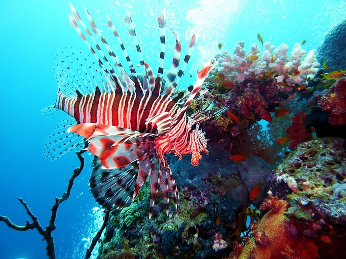 Keywords: diving underwater red fire fish underwater world fish toxic risk