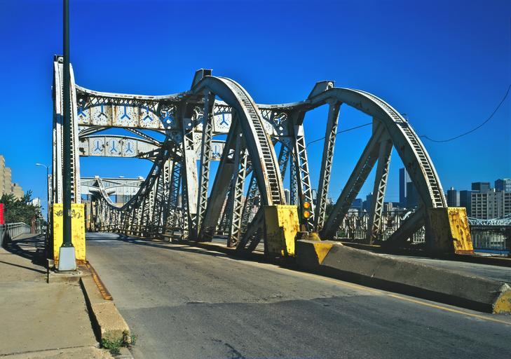 Keywords: Division Street Bridge (east) in Chicago, 1999.jpg The eastern Division Street Bridge in Chicago Illinois one of two almost identical bridges on West Division Street viewed looking east from the northwest sidewalk The east bridge crosses the North Branch Canal whereas the west bridge crosses over the North Branch of the Chicago River It was built in 1902 “1903 opening in February 1903 and is a bascule bridge of a design known as Chicago Type Bascule <br> In the righthand background of this 1999 photo the old Halsted Street Bridge is partially in view That 1909-built bridge was dismantled in 2011 and replaced by a new bridge Historic American Engineering Record Creator Jet Lowe 1999 ILL 16-CHIG 142--9 41 54 13 2 N 87 39 0 2 W East Division Street Bridge 1999 in Chicago PD-USGov |