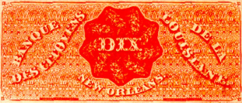 Keywords: DixBanqueDesCitovens.png 10 dollar banknote Citizens Bank of Louisiana New Orleans 1860 French inscription reads DIX ; such notes are one suggested origin for the term Dixie to refer to the US South Note printed by the National Bank Note Company for the Citizen's Bank of Louisiana via Louisiana State Museum website http //lsm crt state la us/cabildo/cab9a htm 1860 National Bank Note Company/Citizen's Bank of Louisiana PD-Old Similar note File Royal Gun Shop Dixie Note jpg 1860 in New Orleans 10 United States dollar banknotes French language Original upload log wikitable - - 2008-07-26 17 11 15 350 × 150 64433 bytes Infrogmation <nowiki> 10 dollar banknote Citizens Bank of Louisiana New Orleans 1860 French inscription reads DIX ; such notes are one suggested origin for the term Dixie to refer to the US South Note printed by the National Bank No</nowiki> |