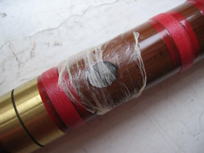 Keywords: Dizi2.JPG own photo 2006 di 笛 Pinyin dí aka dizi 笛子 Pinyin dízi aka Chinese bamboo flute 中国竹笛 Pinyin zhōng guó zhú dí aka Chinese membrane flute 中国 笛 Pinyin zhōng guó mó dí ; close-up of membrane hole with membrane of onion skin the poor European's substitute Dizi Bamboo in use 2006-04-02 own assumed Bero |