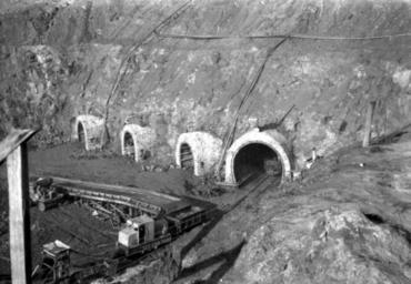 Keywords: power station hydro electric commision tasmania trevallyn launceston blackandwhite monochrome black and white Trevallyn power station construction, circa 1953. Penstocks David Lidster collection Trevallyn power station construction, circa 1953. Penstocks David Lidster collection |