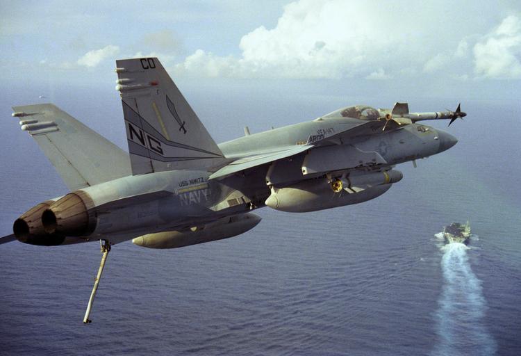 Keywords: unknown aircraft vehicle outdoor airplane .330-CFD-DN-SC-04-08802: An F-18C Hornet from Strike Fighter Squadron 147 (VFA-147) "Argonauts," Naval Air Station (NAS) Lemoore, California simulates a landing approach to the carrier USS Nimitz (CVN 68), ported at North Island, California. The Hornet is armed with AIM-9 Sidewinders and AGM-65 Mavericks. Exact date photo taken unknown, 9/16/1996. (OPA-NARA II-8/19/2015). .330-CFD-DN-SC-04-08802: An F-18C Hornet from Strike Fighter Squadron 147 (VFA-147) "Argonauts," Naval Air Station (NAS) Lemoore, California simulates a landing approach to the carrier USS Nimitz (CVN 68), ported at North Island, California. The Hornet is armed with AIM-9 Sidewinders and AGM-65 Mavericks. Exact date photo taken unknown, 9/16/1996. (OPA-NARA II-8/19/2015).