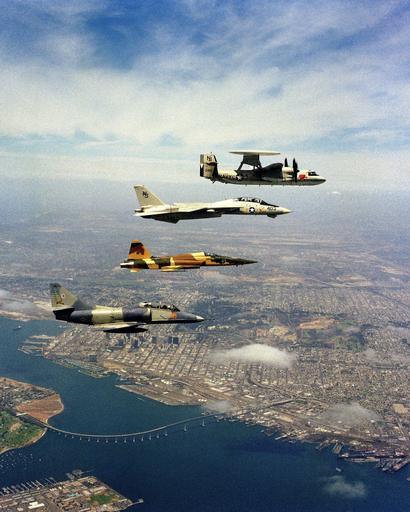 | Keywords: california (ca) californiaca united states of america (usa) unitedstatesofamericausa outdoor 330-CFD-DN-SC-85-00403: An air-to-air right side view (from top to bottom) of an E-2C Hawkeye aircraft from Airborne Early Warning Squadron 113 (VAW-113), an F-14 Tomcat aircraft from Fighter Squadron 124 (VF-124), an F-5E Tiger II aircraft from Fighter Squadron 126 (VF-126) and a TA-4 Skyhawk aircraft from Fighter Squadron 126 (VF-126),fly above San Diego, California, May 21, 1984. (OPA-NARA II-8/6/2015). 330-CFD-DN-SC-85-00403: An air-to-air right side view (from top to bottom) of an E-2C Hawkeye aircraft from Airborne Early Warning Squadron 113 (VAW-113), an F-14 Tomcat aircraft from Fighter Squadron 124 (VF-124), an F-5E Tiger II aircraft from Fighter Squadron 126 (VF-126) and a TA-4 Skyhawk aircraft from Fighter Squadron 126 (VF-126),fly above San Diego, California, May 21, 1984. (OPA-NARA II-8/6/2015). 330-CFD-DN-SC-85-00403: An air-to-air right side view (from top to bottom) of an E-2C Hawkeye aircraft from Airborne Early Warning Squadron 113 (VAW-113), an F-14 Tomcat aircraft from Fighter Squadron 124 (VF-124), an F-5E Tiger II aircraft from Fighter Squadron 126 (VF-126) and a TA-4 Skyhawk aircraft from Fighter Squadron 126 (VF-126),fly above San Diego, California, May 21, 1984. (OPA-NARA II-8/6/2015). unitedstatesofamericausa californiaca E-2C Hawkeye, F-14 Tomcat, F-5E Tiger II and TA-4 Skyhawk fly above San Diego.jpg An air-to-air right side view from top to bottom of an E-2C Hawkeye aircraft from Airborne Early Warning Squadron 113 VAW-113 an F-14 Tomcat aircraft from Fighter Squadron 124 VF-124 an F-5E Tiger II aircraft from Fighter Squadron 126 VF-126 and a TA-4 Skyhawk aircraft from Fighter Squadron 126 VF-126 fly above San Diego California May 21 1984 https //www flickr com/photos/127906254 N06/19719447283/ DN-SC-85-00403 1984-05-21 PHCS B Lawson <gallery>File E-2C F-14A F-5E and TA-4F in flight 1984 JPEG</gallery> PD-USGov-Military-Navy Leoboudv 2016-07-02 Northrop Grumman E-2C Hawkeye in flight Aircraft formation flight of F-14A Tomcat Aerial photographs of F-14 Tomcat in flight F-5 Tiger II TA-4F Skyhawk Fighter Squadron 124 United States Navy Fighter Squadron 126 United States Navy Airborne Early Warning Squadron 113 United States Navy Mixed aircraft formations |