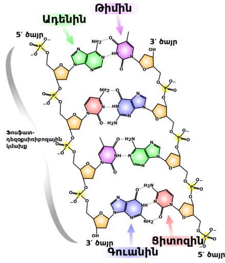 Keywords: DNA chemical structure hy.svg en Chemical structure of DNA with colored label identifying the four bases as well as the phosphate and deoxyribose components of the backbone in Armenian 2014-12-01 File DNA chemical structure svg Madprime other versions cc-zero Uploaded with UploadWizard DNA |