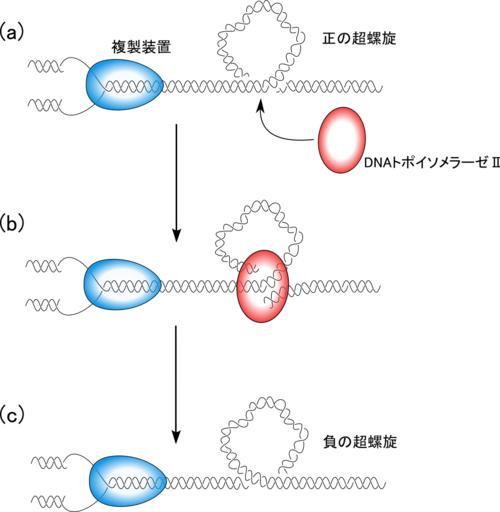 Keywords: DNA loop jp.svg ja DNAト イソメラーゼ による超螺旋解消の様子 inkscape を使用し 成 鷹ノ巣 2010-03 DNA