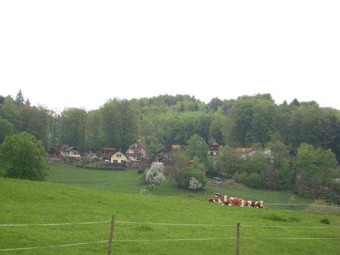 Keywords: Dobeno.jpg en Spodnje Dobeno village in Slovenia Own Sl-Ziga 2009 Dobeno Mengeš Cows in Slovenia Agriculture in Upper Carniola