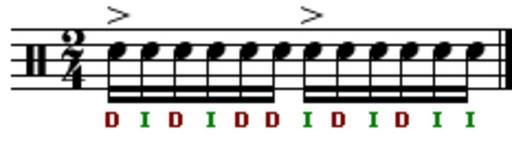 Keywords: Doble Paradiddle.PNG 2005-11-16 own assumed Verdecito~commonswiki Sheet music examples