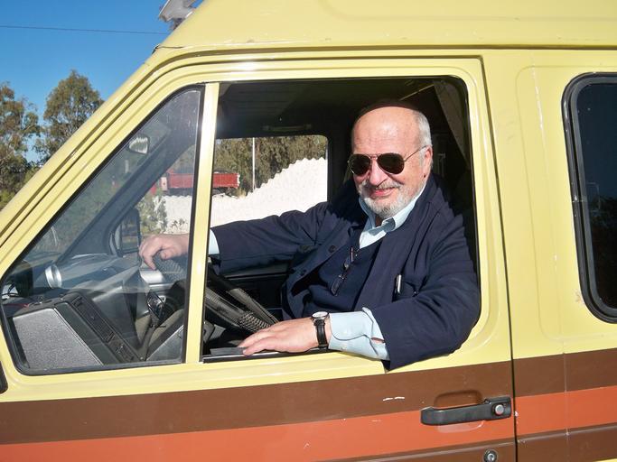 Keywords: Doctorcuervo.jpg es El Dr Horacio Cuervo Zenié conduciendo el motorhoe Renault Trafic modelo '88 a la que bautizó 'Clementina' con la que recorrerá 37 mil Km entre Argentina y Canadá en una travesía que abarcará 20 países y 163 ciudades Own Oscar Pinco 10-09-2009 Renault Trafic 1980 Drivers Men with sunglasses |